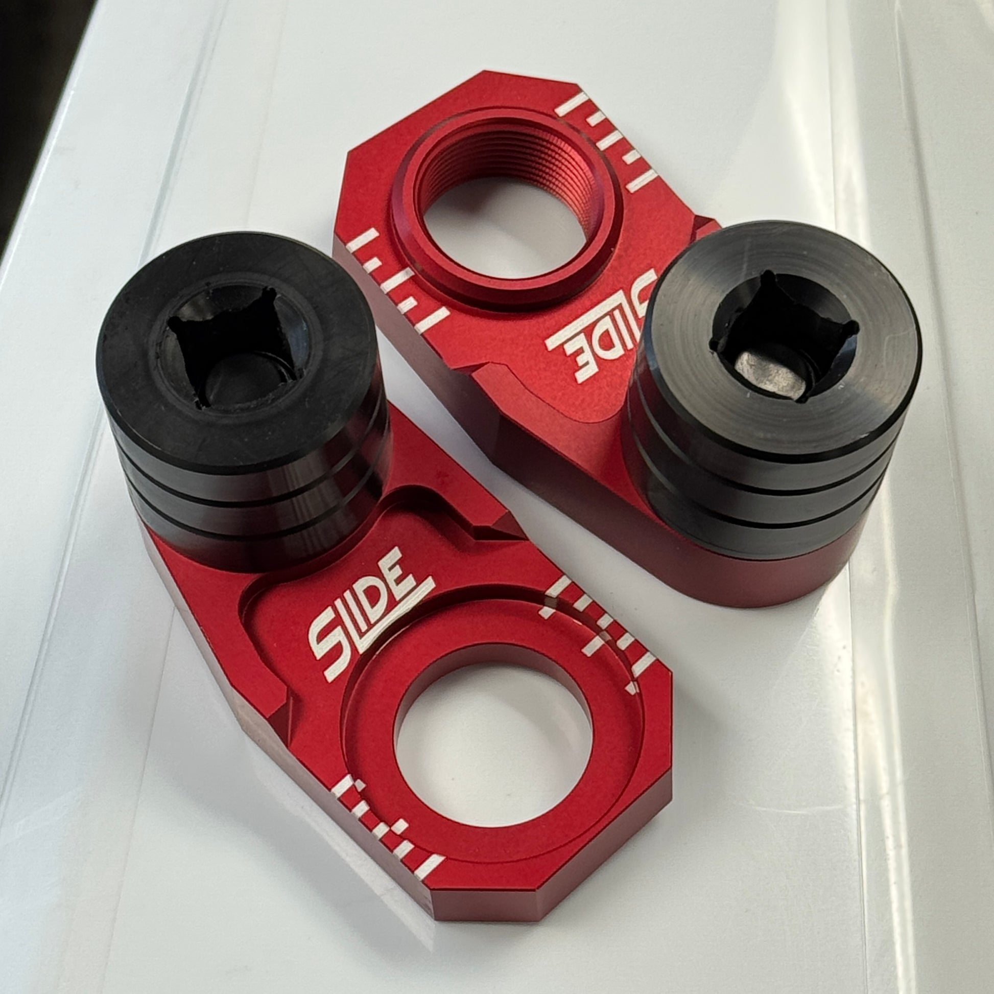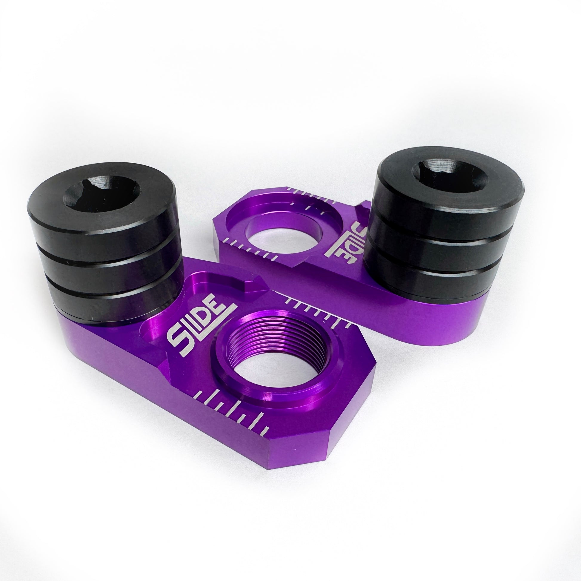 The SLIDE Moto Pro Sliders are the best crash protection you can put on your supermoto. They offer the most functionality and performance of any axle slider on the market. They make wheel changes and bike maintenance a breeze.